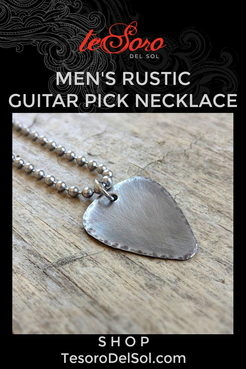 As part of my guitar pick necklace collection, this one will be made with a cool oxidized and rustic finish. Leave it plain as shown, or have me personalize it for you. Simply select your choice from the drop down menu. The sturdy ball chain and thick guitar pick are created entirely of stainless steel which makes for an amazing alternative to sterling silver. The guitar pick pictured has been given a rustic texture and finish. Can only be stamped on one side.