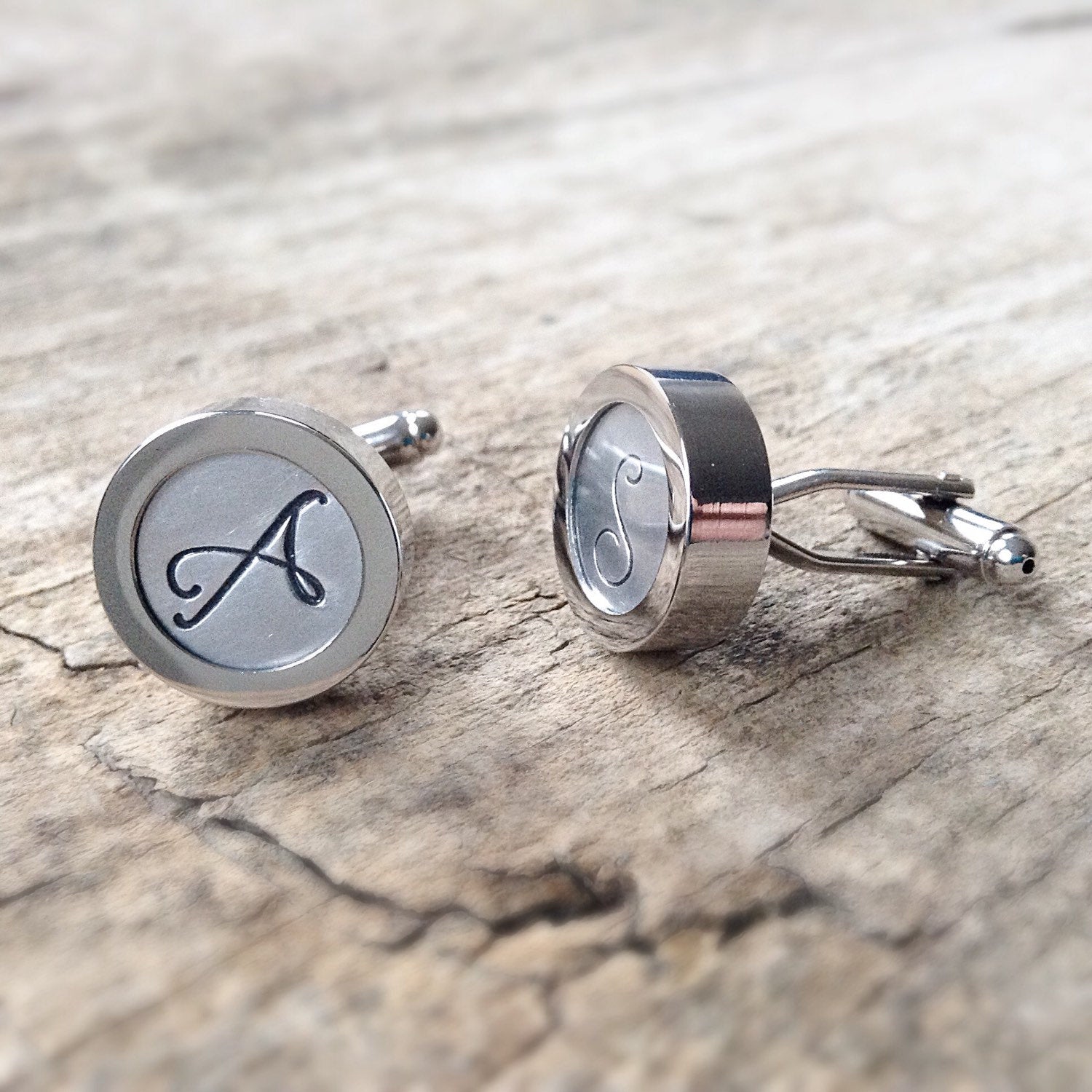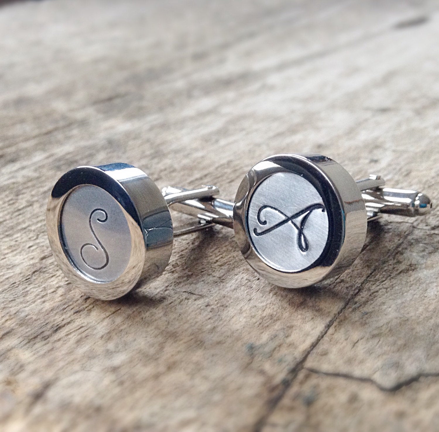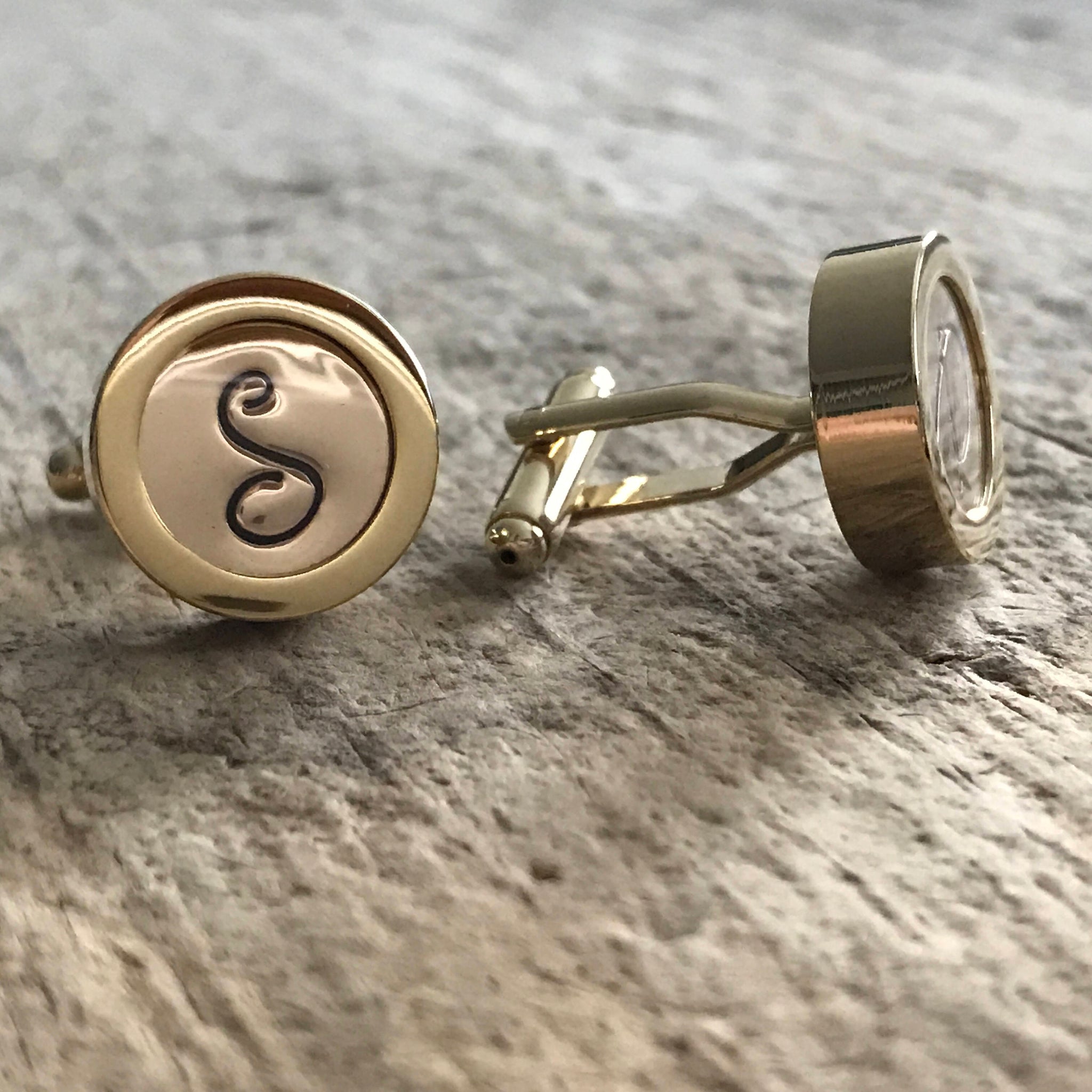 Add a touch of boho-luxe with these elegant gold monogram cufflinks customized especially for you. Each cufflink will feature one letter in the classic uppercase cursive font shown. With their high shine finish, these cufflinks make a statement. They make amazing gifts for your dad, brother, partner, spouse, groomsmen, groom, or anyone who loves wearing cufflinks! If you need more than the quantity shown in the drop-down menu, please let me know.