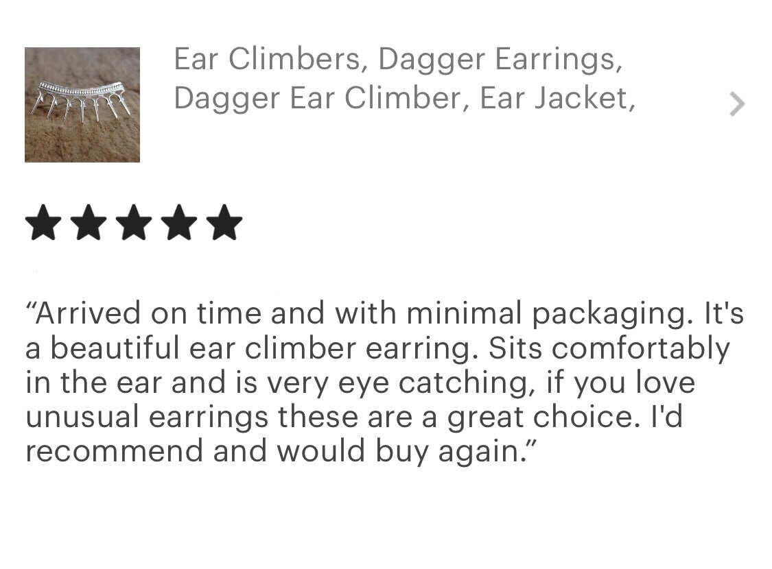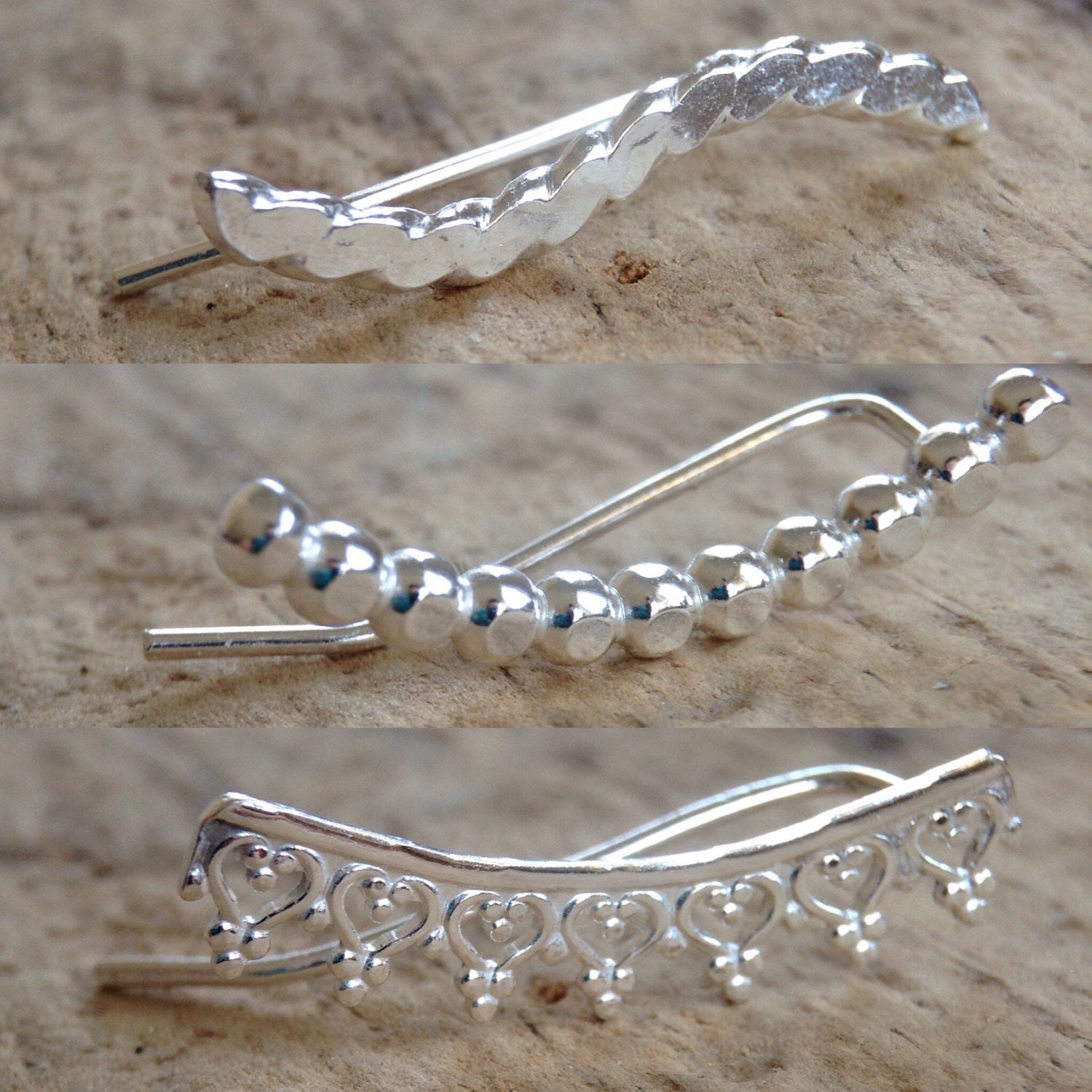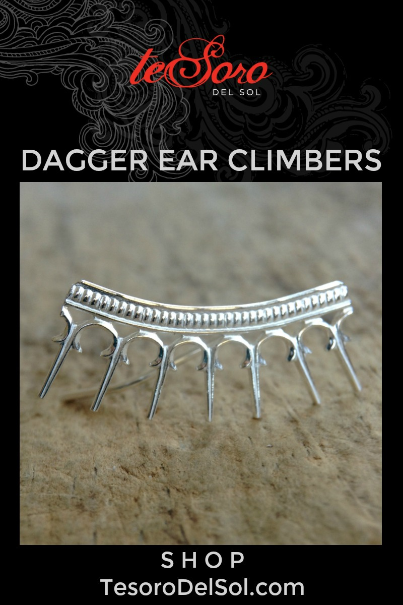 Ideal for pulling off the ultimate edgy look, these dagger ear climbers are perfect for making a bold and unique statement. Hand crafted with sterling silver with a rustic dagger pattern and finished off with a shiny exterior. Available as a pair or a single earring.