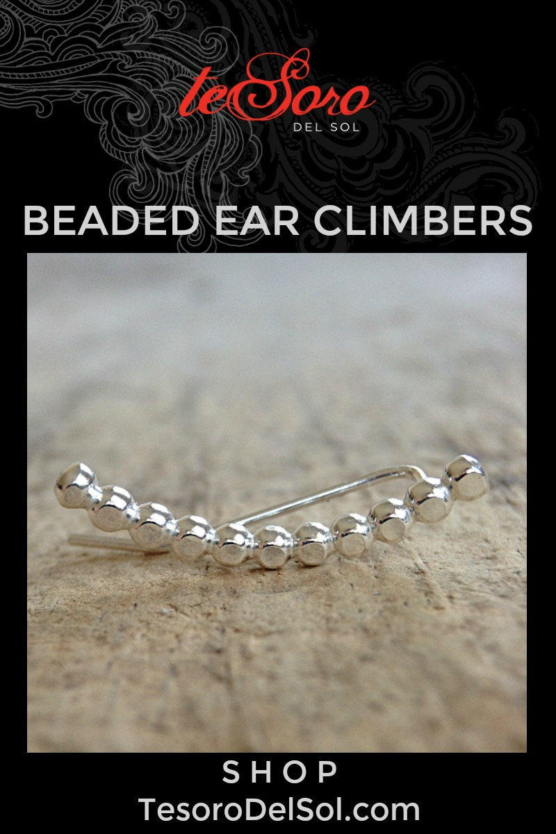 Boho Luxe Silver Beaded Ear Climbers