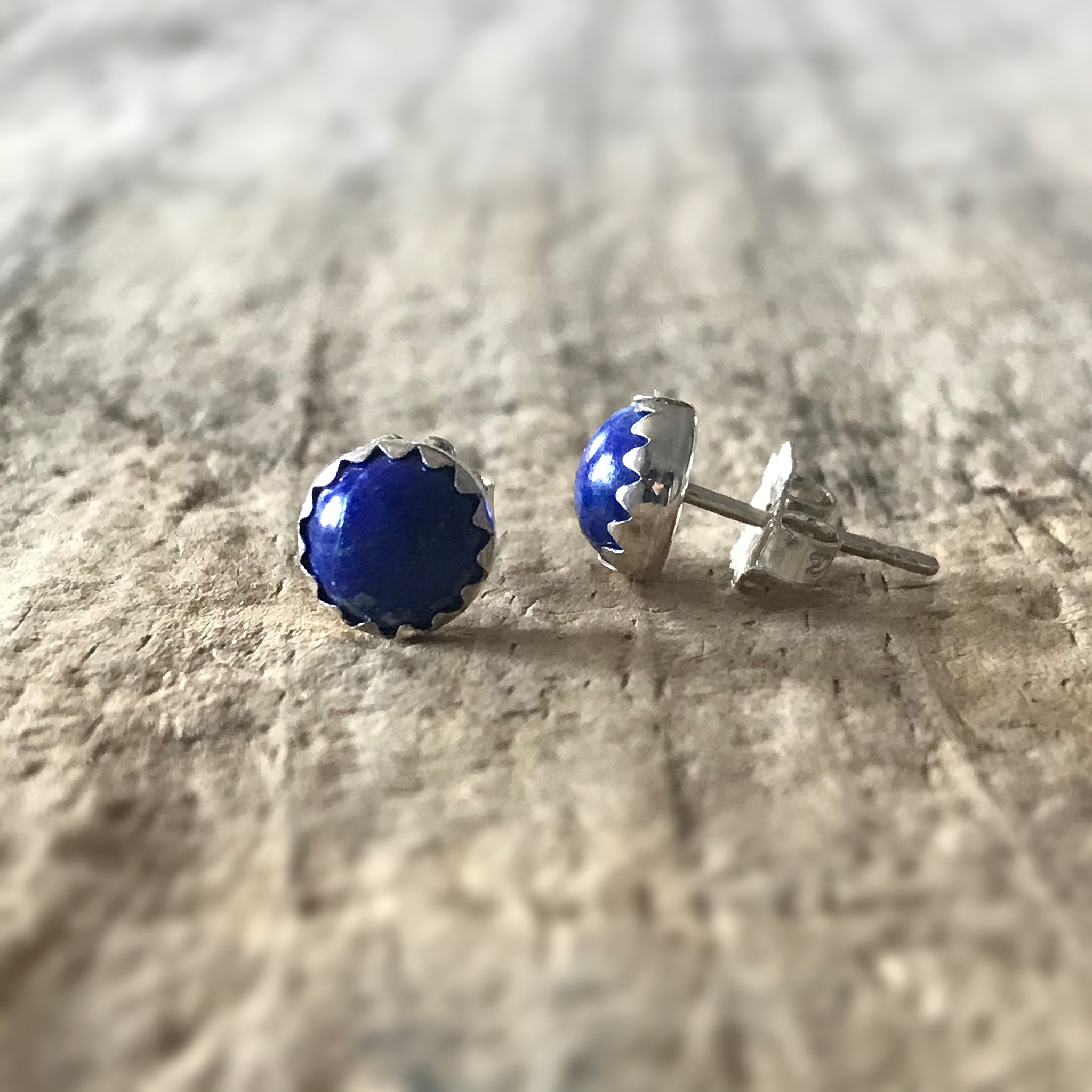 These lapis lazuli earrings are made with genuine stones and will make a great addition to your everyday studs. The natural stones are set in 925 sterling silver posts and measure approximately 6.5mm in diameter. A minimalist boho accessory that can be worn daily.