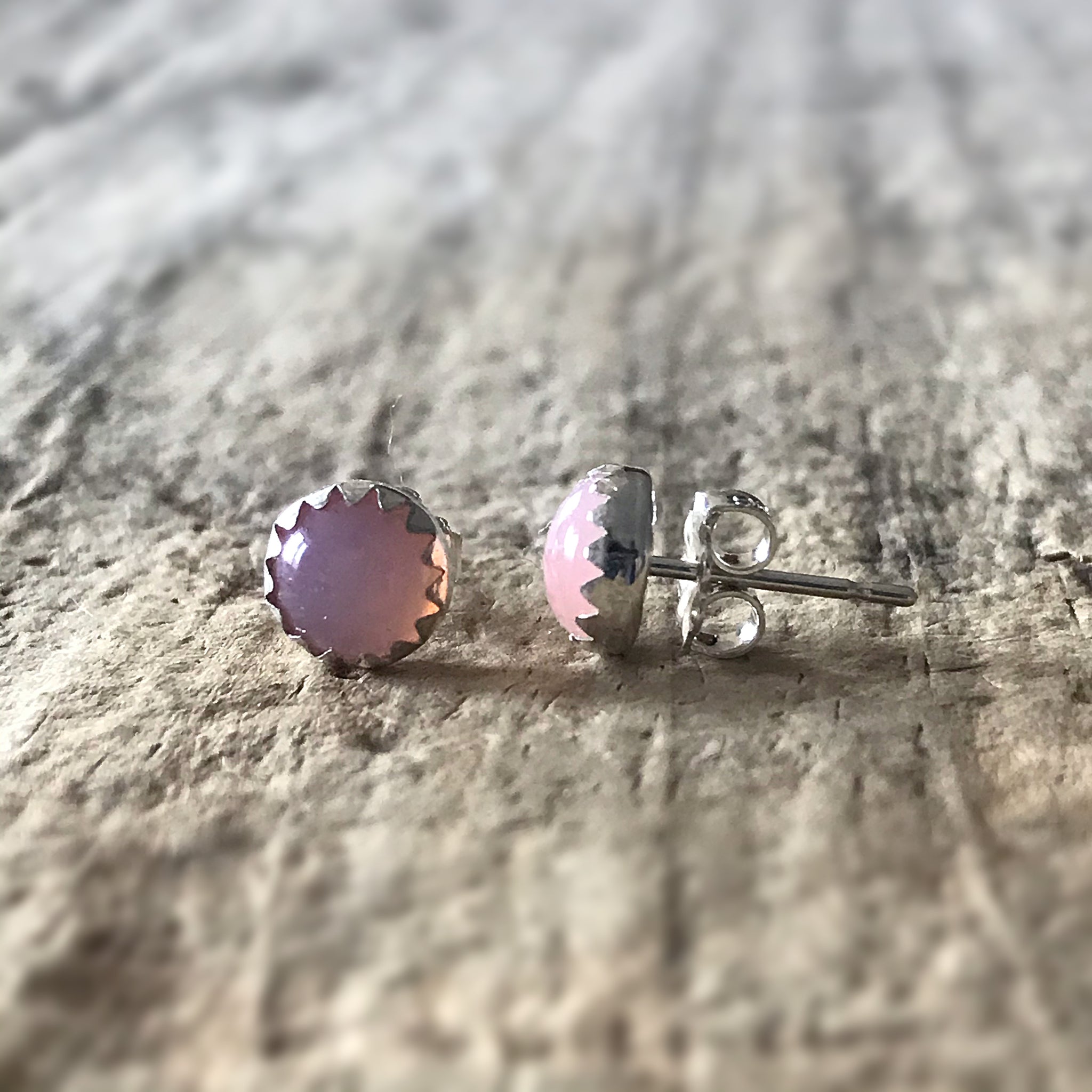 These pink chalcedony earrings are made with genuine stones and will make a great addition to your everyday studs. The natural stones are set in 925 sterling silver posts and measure approximately 6.5mm in diameter. A minimalist boho accessory that can be worn daily.