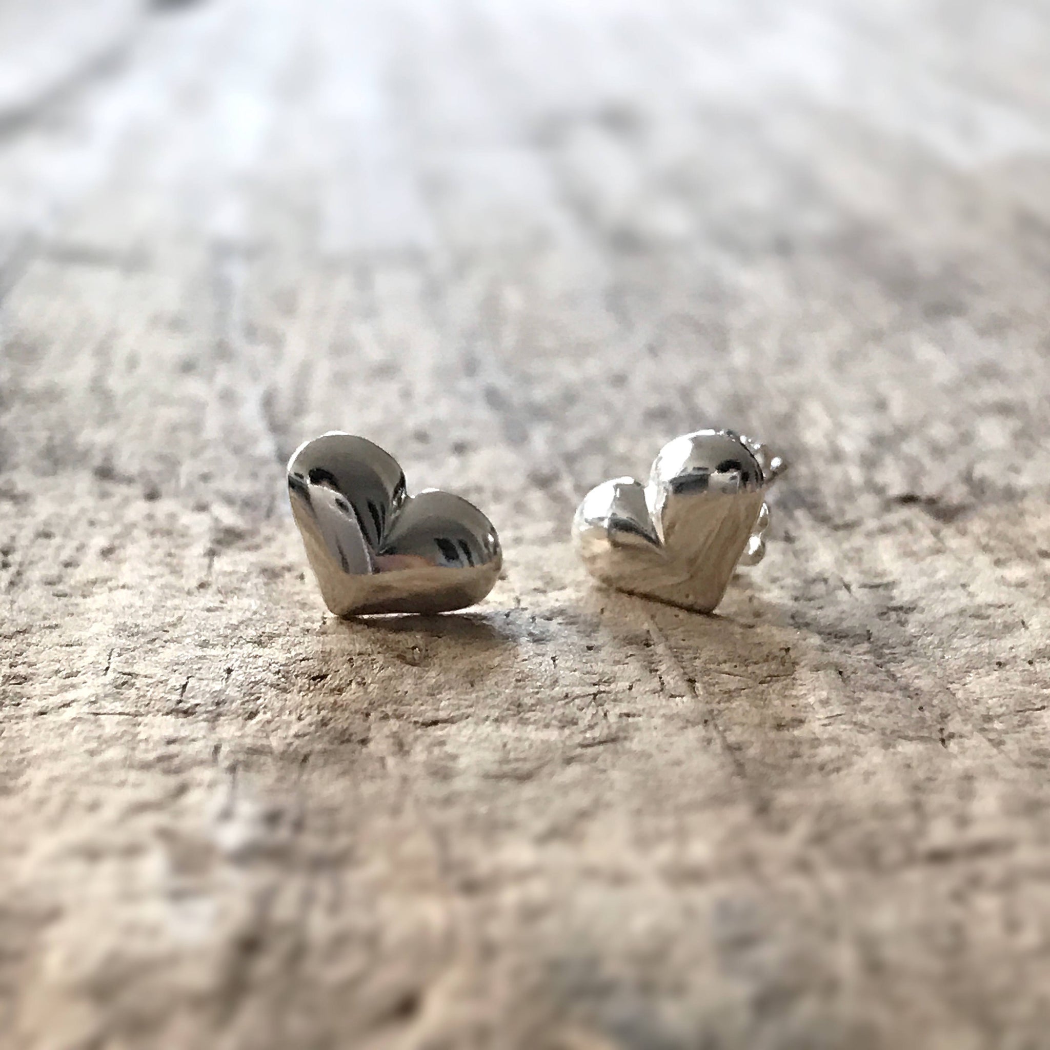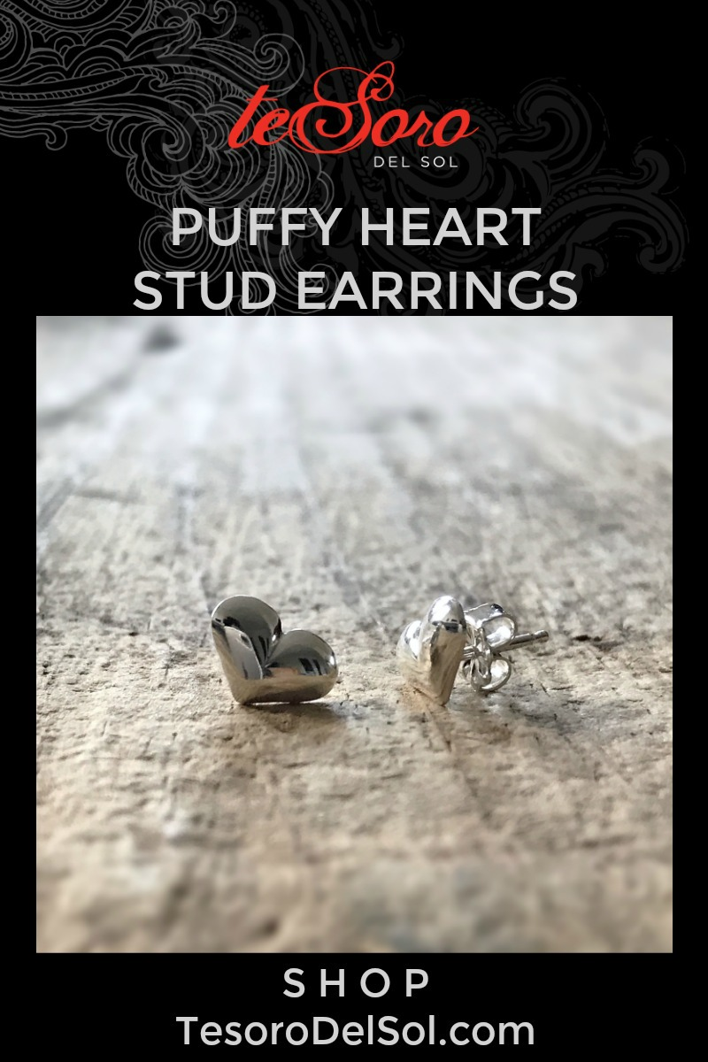 These puffy heart stud earrings are made entirely of sterling silver. These can be purchased as a single earring or as a pair. Choose from 2 finishes including shiny, and antique. A simple addition to your boho chic jewelry collection.