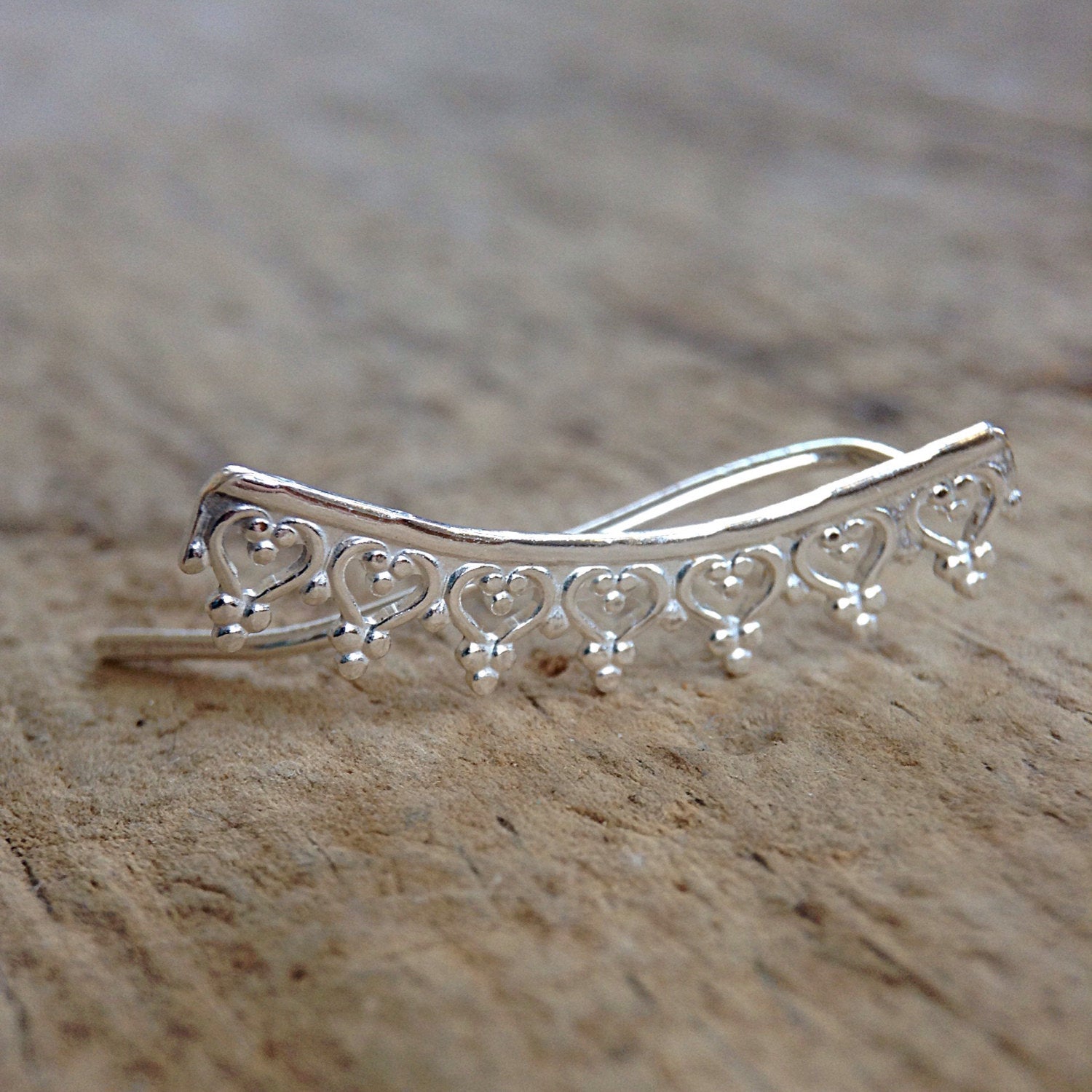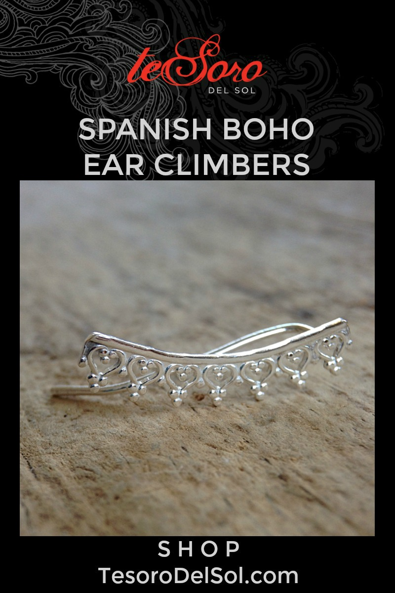 Add a touch of exotic flair with these boho sterling silver ear climbers. An ornate design evoking a Spanish look. Wear a single one, or get a pair. Select your preference from the drop down menu.