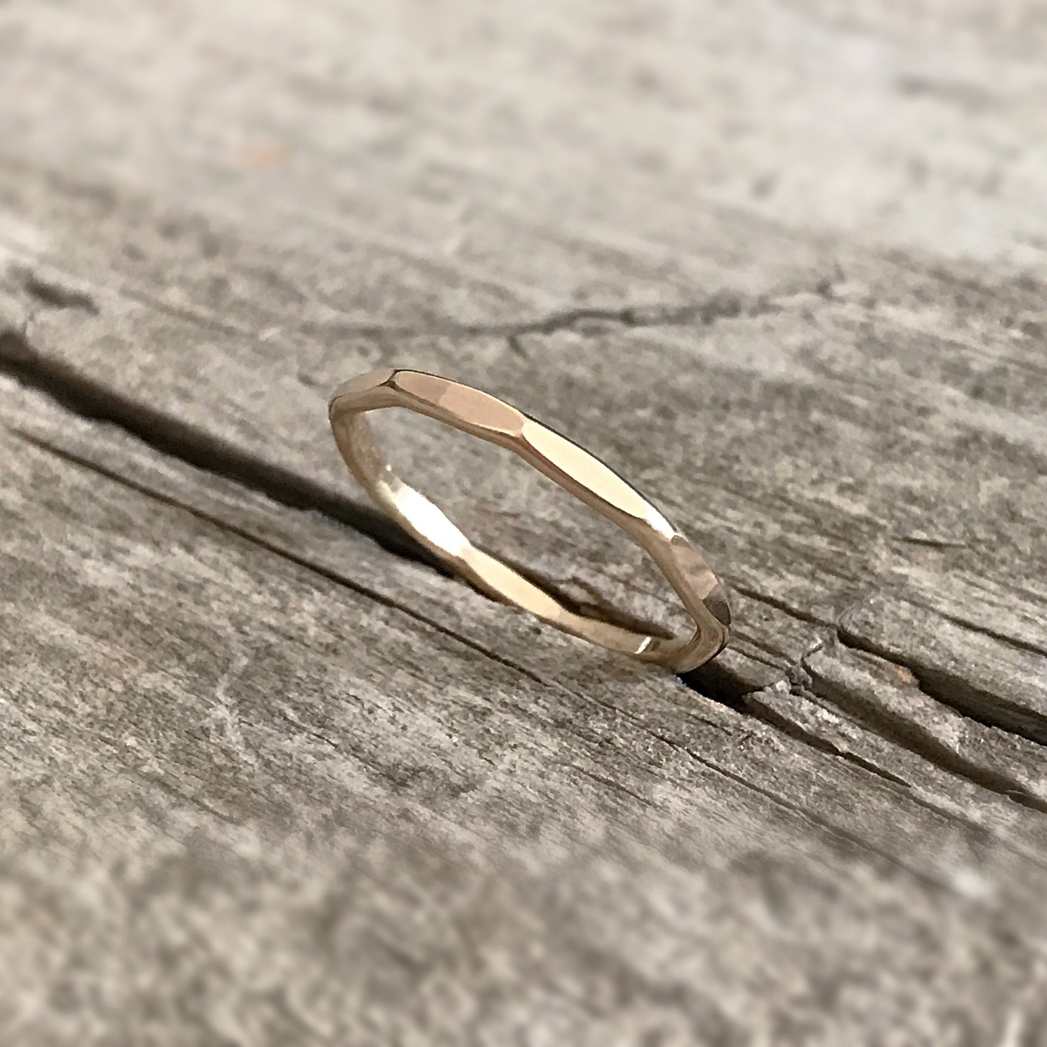The solder join is slightly visible due to the solder color being a lighter shade of gold than the ring itself. This is not to be seen as a defect or flaw. It's just part of the handmade process.