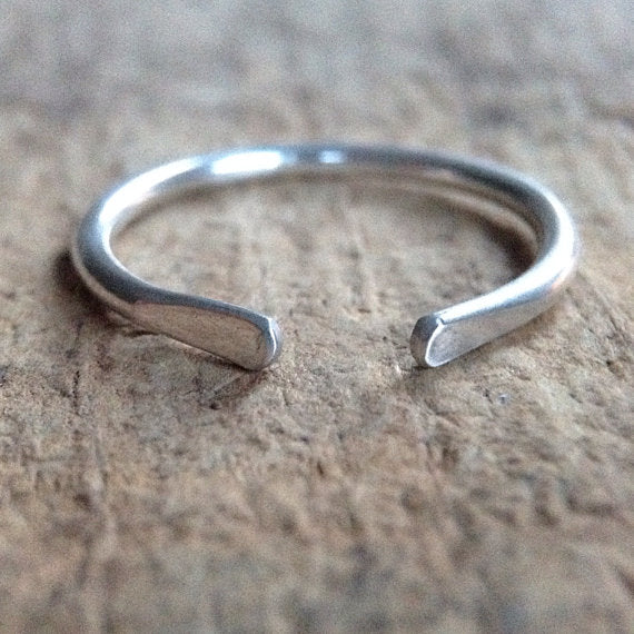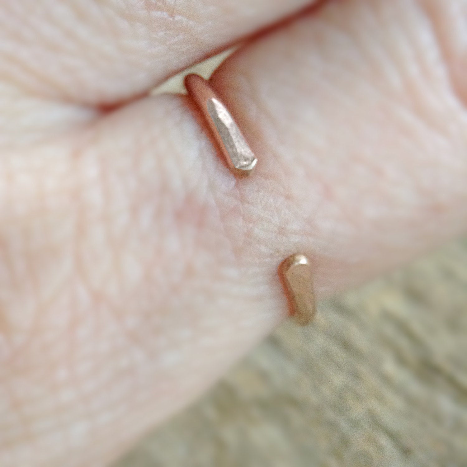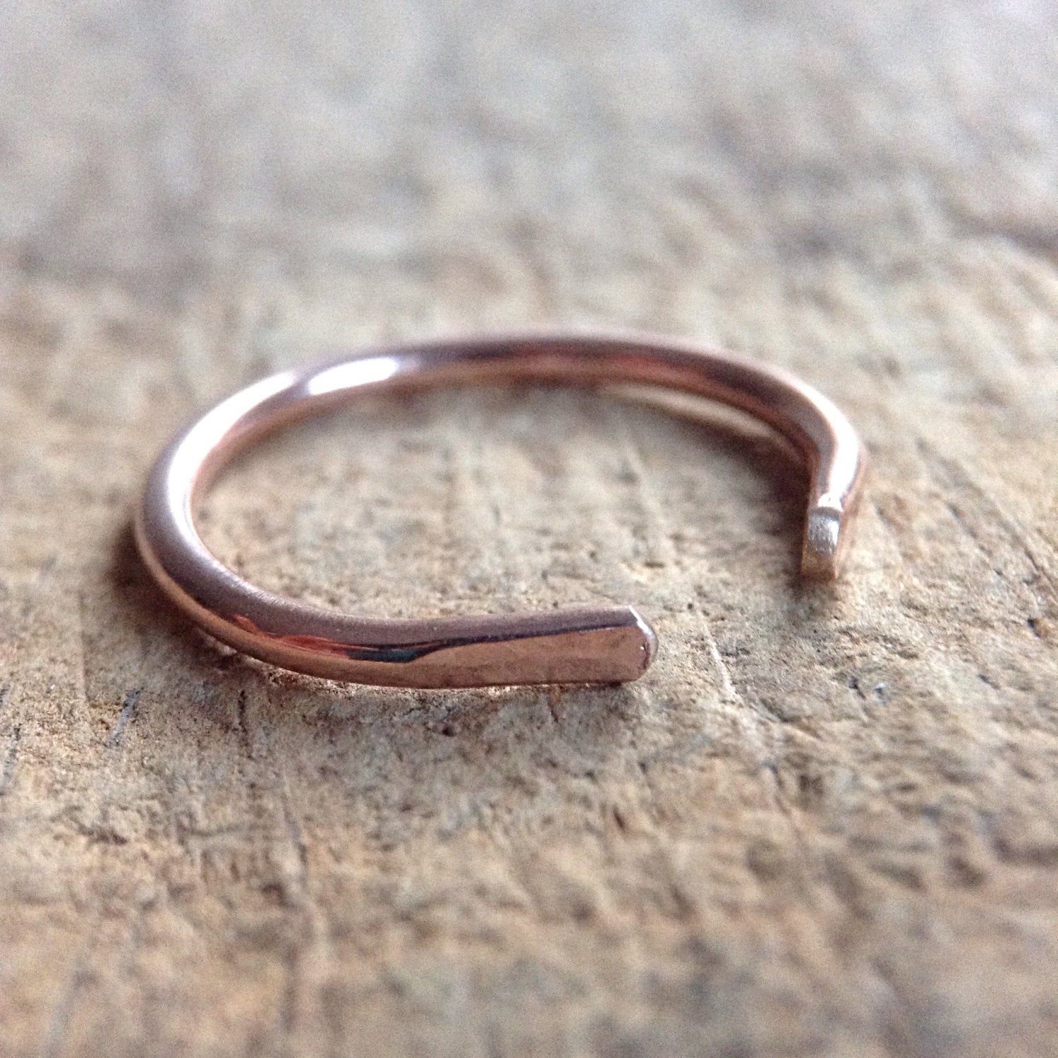 This 14K rose gold filled cuff ring has been gently hand forged with a smooth horseshoe feature which ends have been ever so delicately hammered flat into a paddle shape. These rings are ideal for stacking with many of my other stackable skinny rings, or simply mix with your collection of stackables for an understated mix and match style, complimenting your boho luxe outfit.