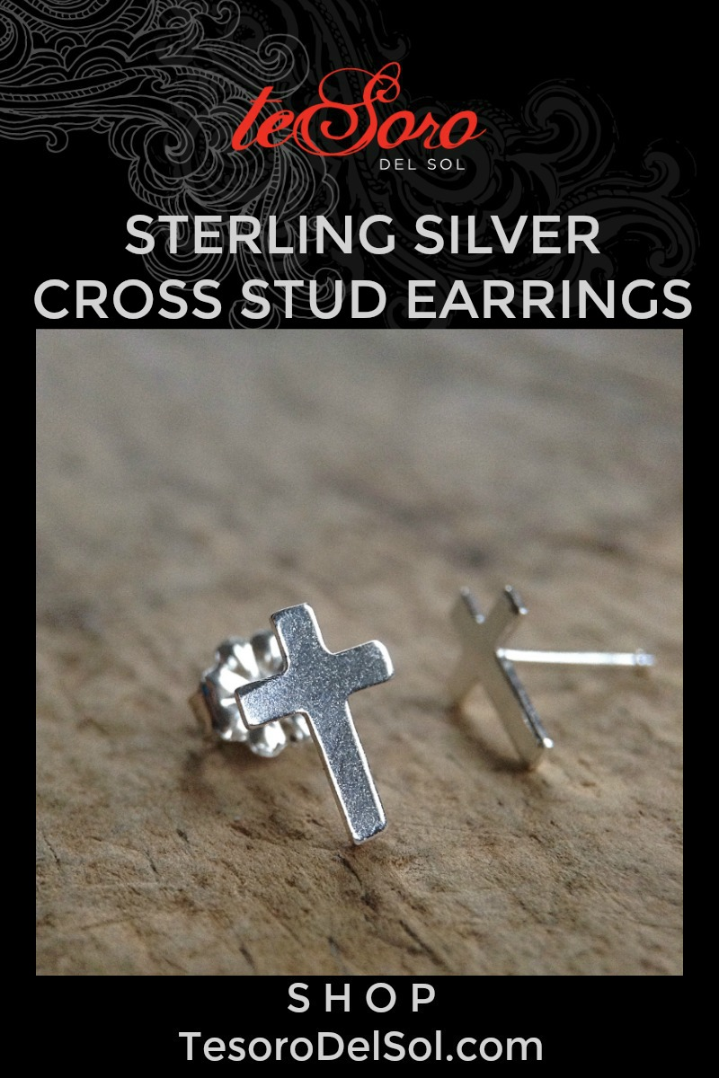 These sterling silver cross stud earrings are so simple, so elegant. Completely hand-crafted by me, they are available in 3 finishes, including shiny, antique and black sterling silver. Simply make your selection from the drop down menu.