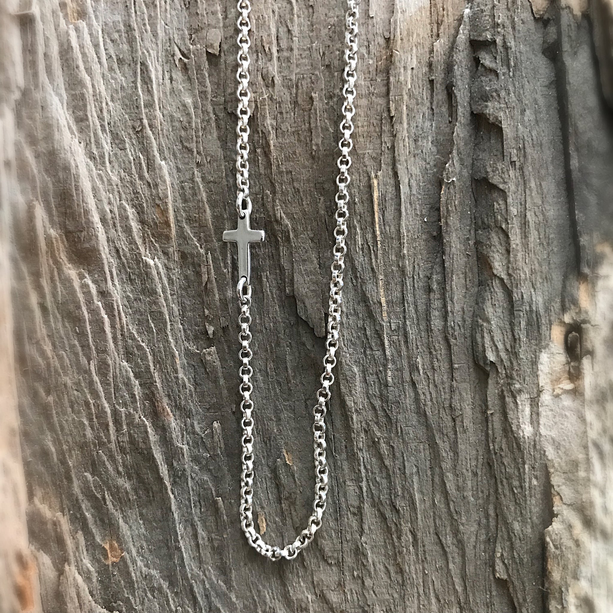 As part of my faith collection, this sterling silver sideways cross necklace will become an essential piece in your everyday jewelry selection, giving you a sense of divine protection each time you wear it. Created in 14K gold fill, and available in a variety of lengths.  Also available in gold.